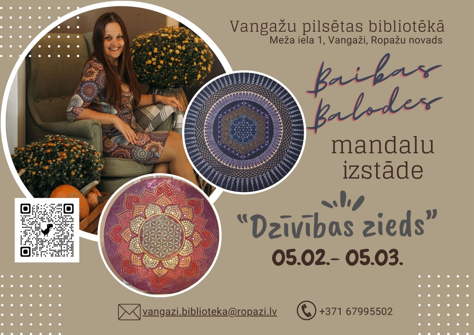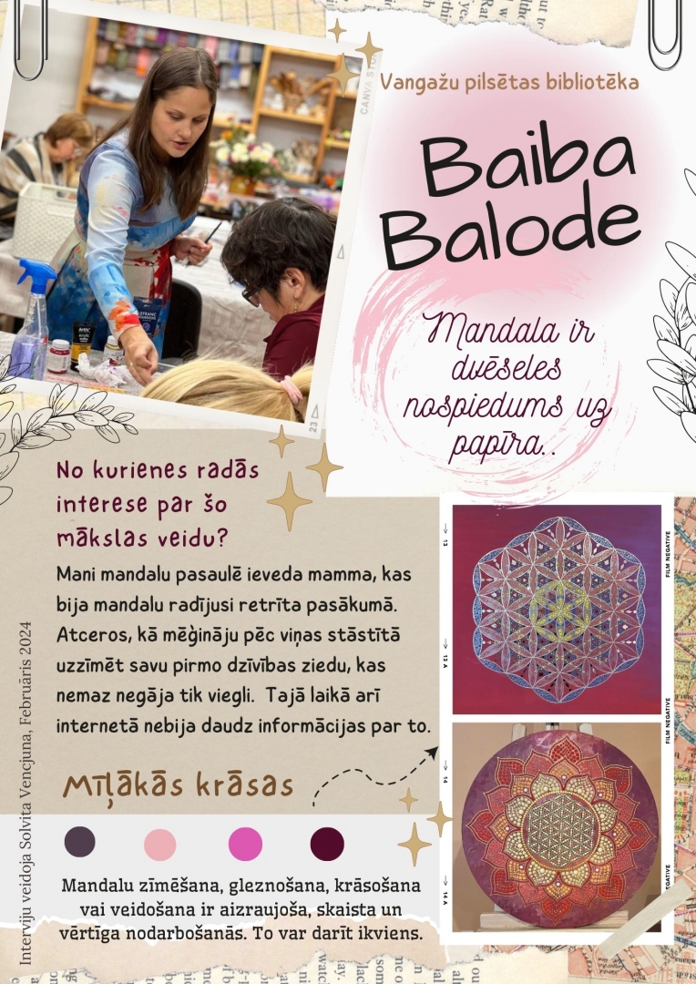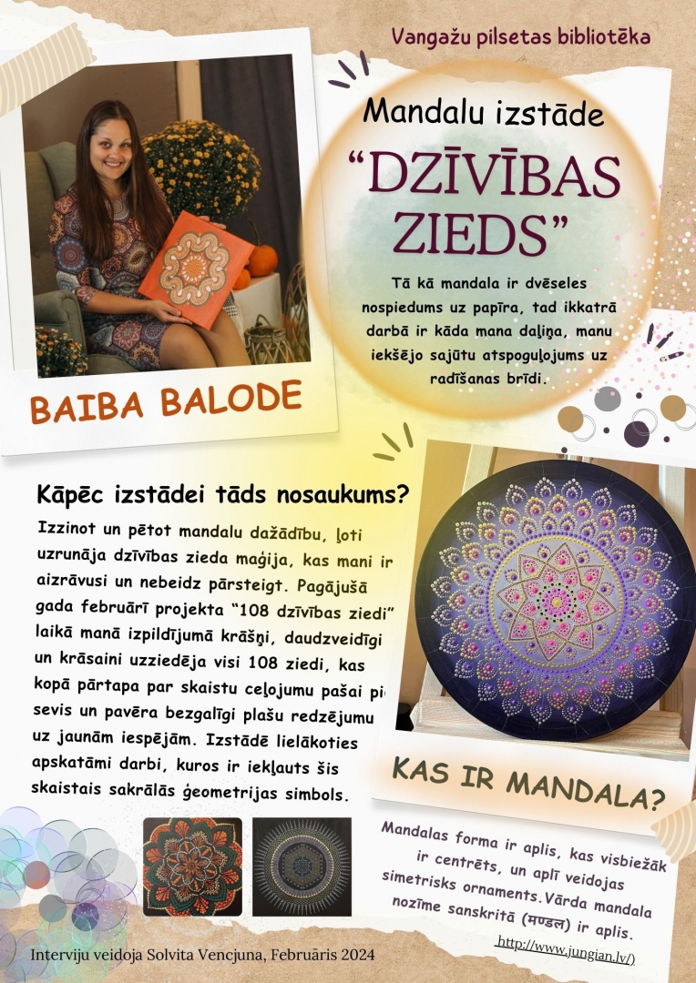 Baibas Balodes mandalu izstāde “Dzīvības zieds” Vangažu pilsētas bibliotēkā