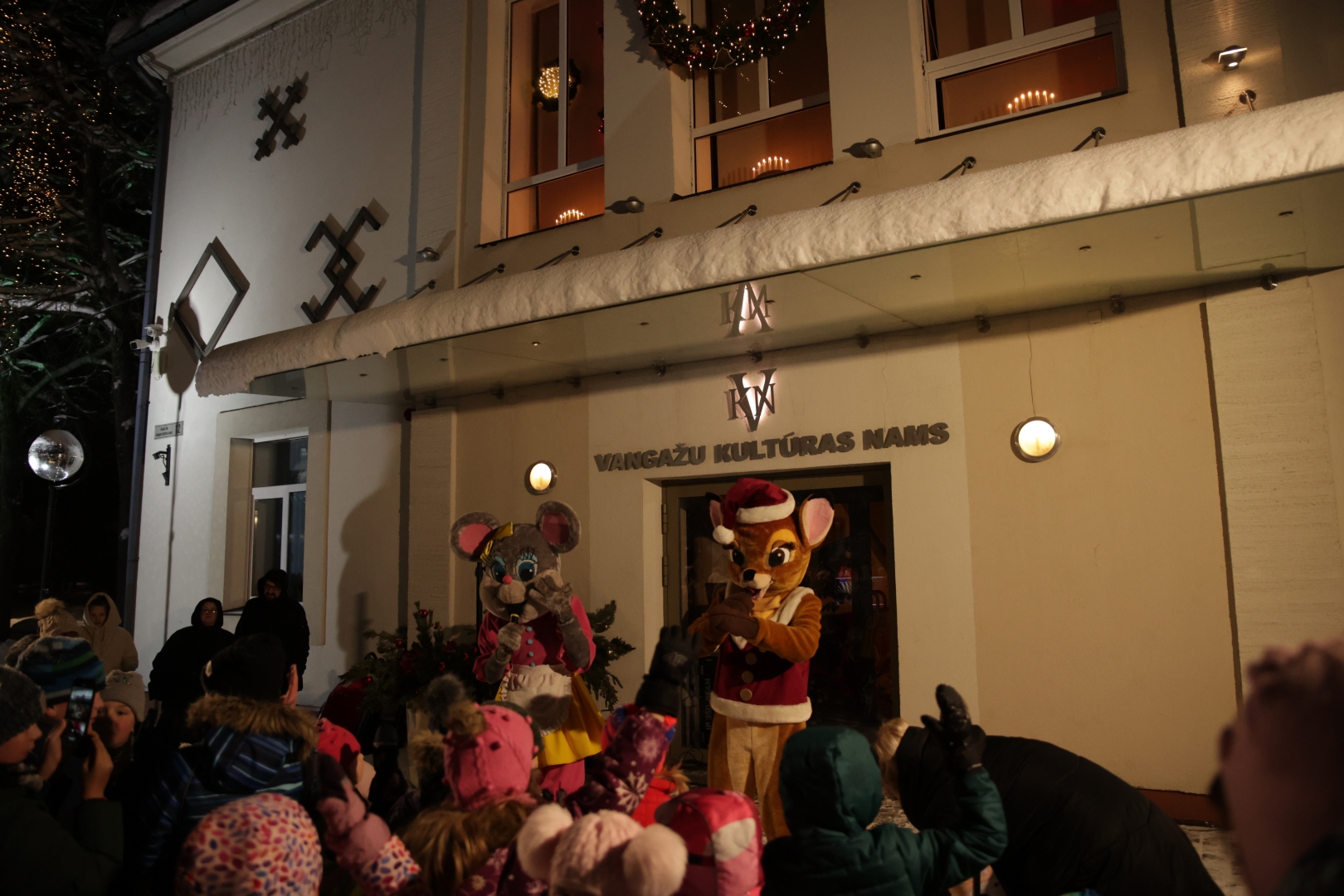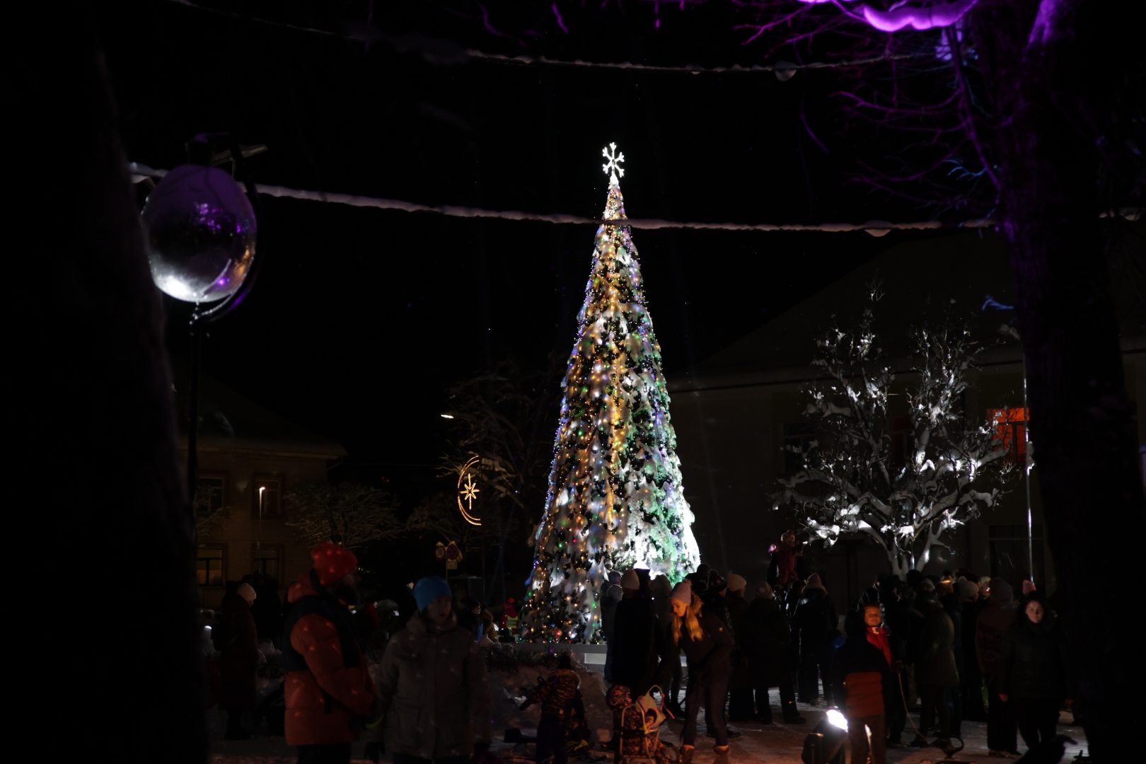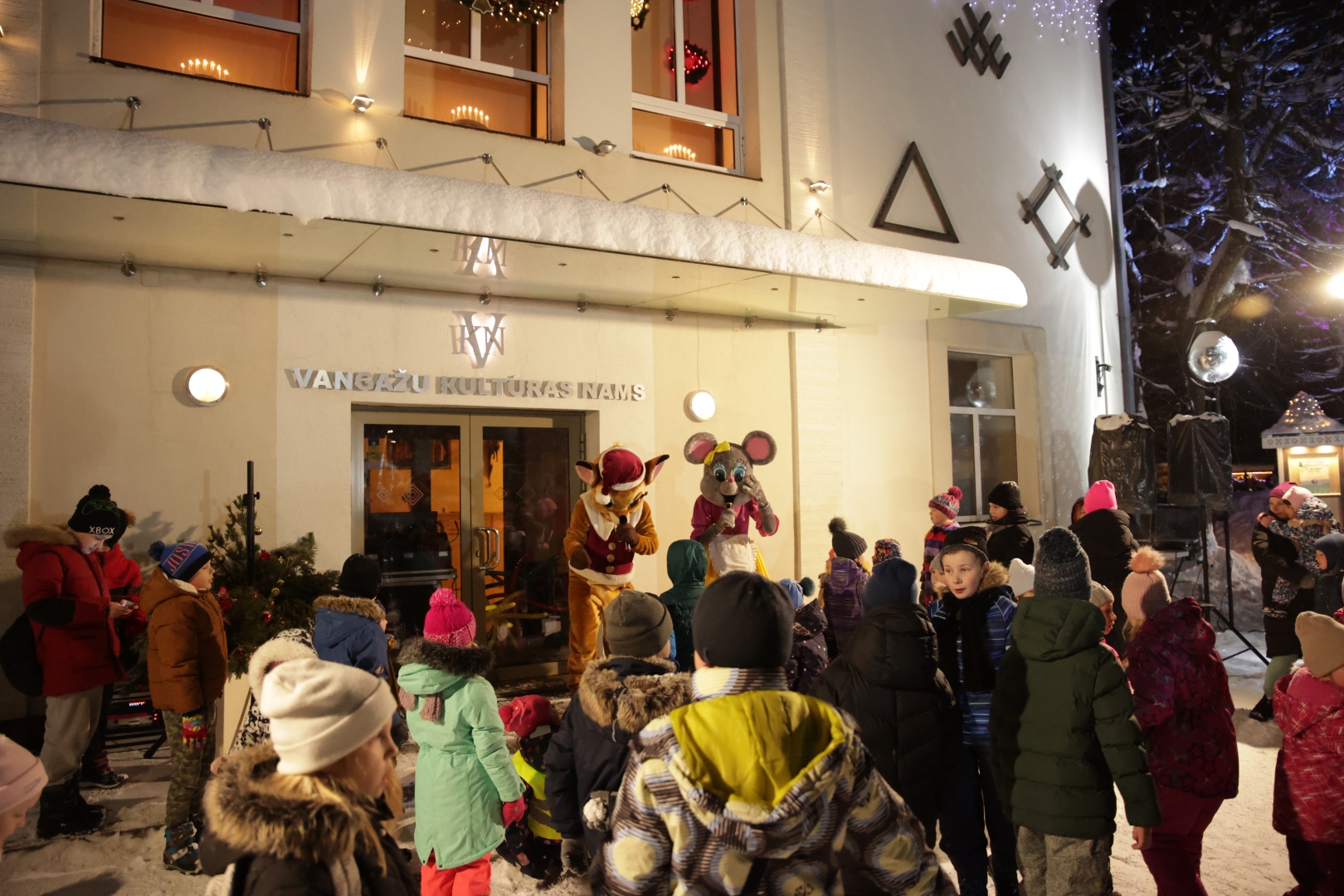 Gaismiņu iedegšana Vangažu pilsētas Ziemassvētku eglītē, 04.12.2023.