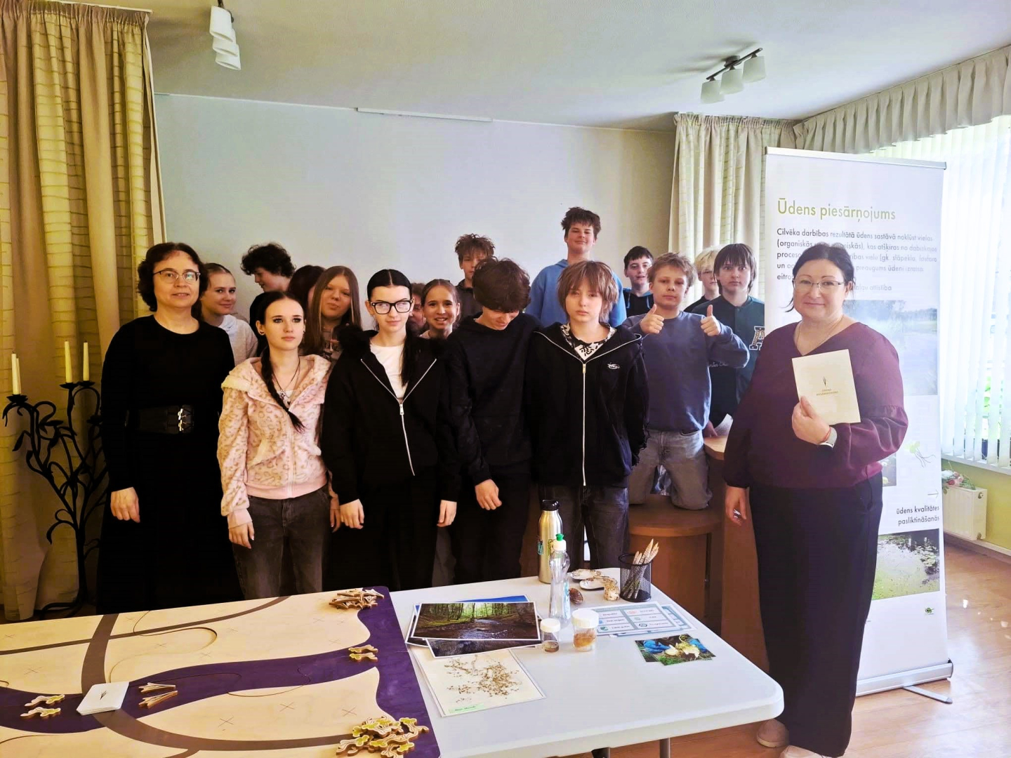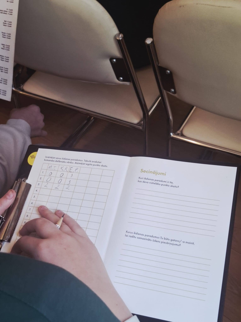 Latvijas Nacionālā dabas muzeja piedāvātā muzejpedagoģiskā izbraukuma nodarbība "Ūdens piesārņojums" Vangažu vidusskolā