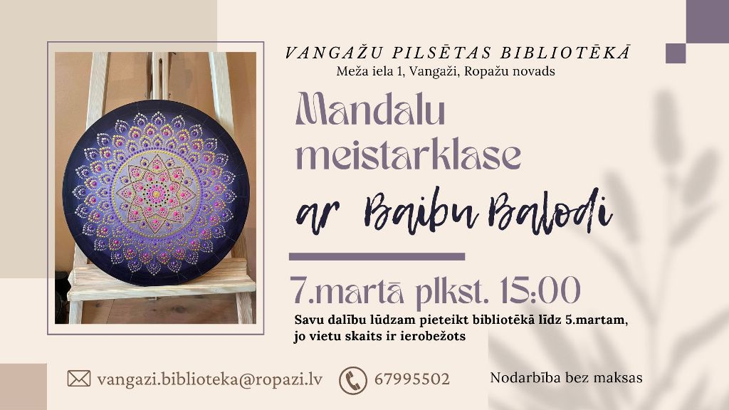 Mandalu meistarklase Vangažu pilsētas bibliotēkā, 07.03.2024.