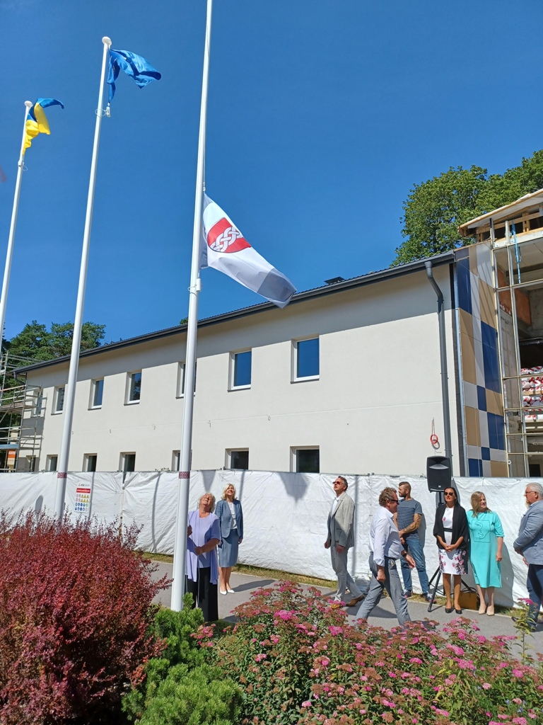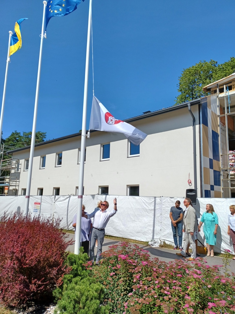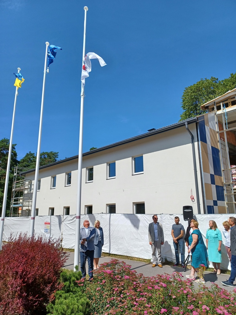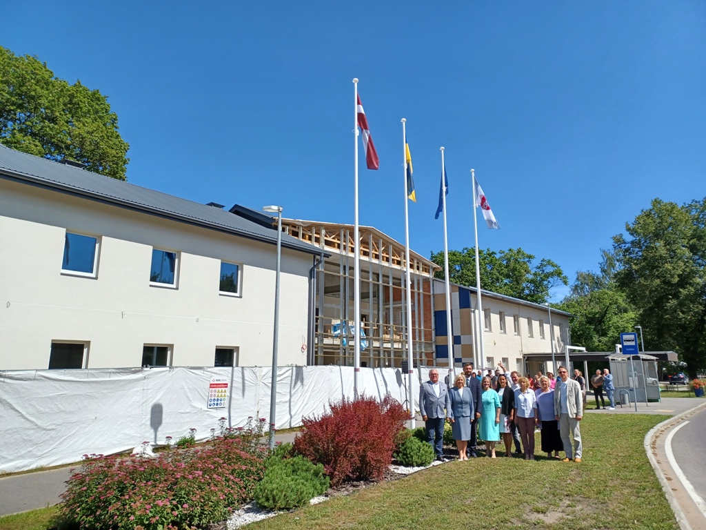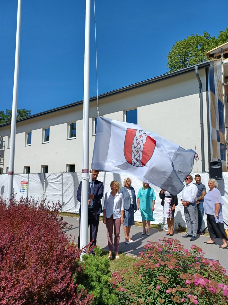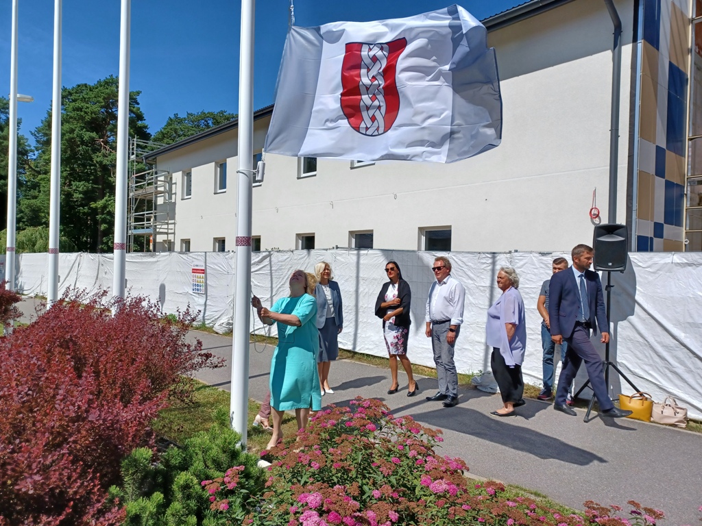 Pie Ropažu novada pašvaldības ēkas svinīgi pacelts jaunais novada karogs