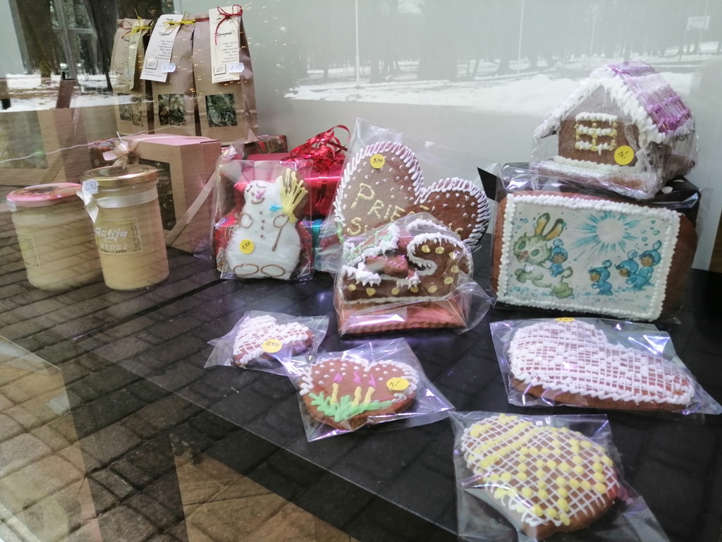 Ropažu pagasta Kultūras centra skatlogos Ziemassvētku tirdziņš-izstāde, 2021. gada decembrī