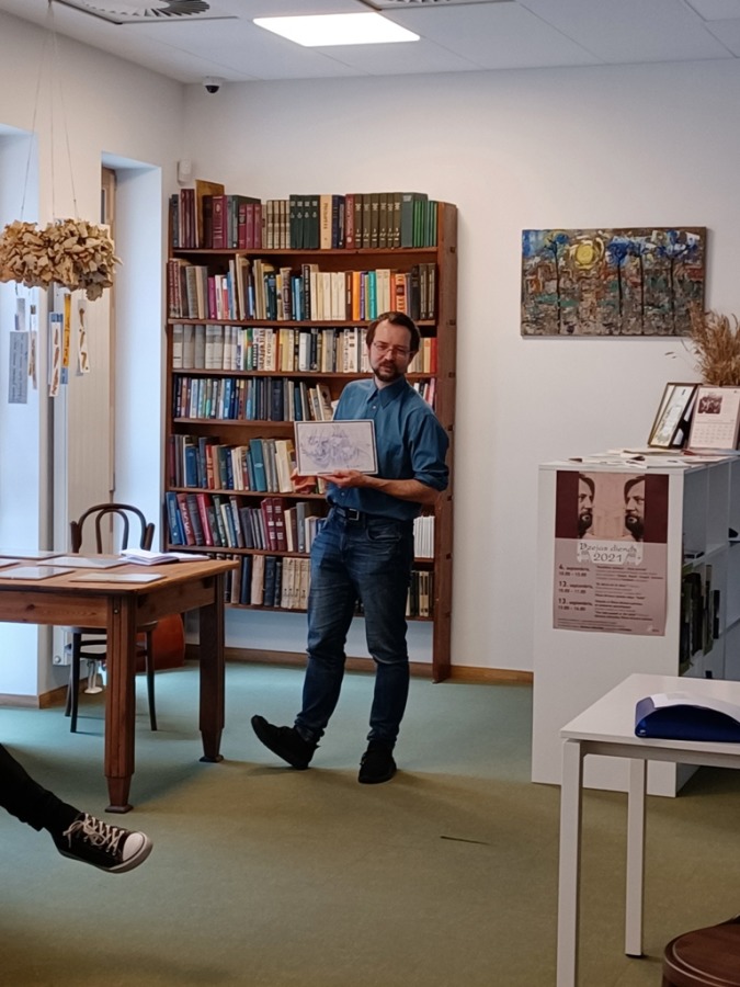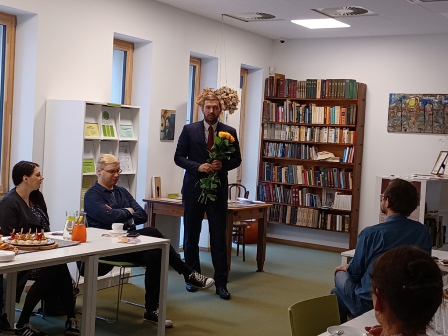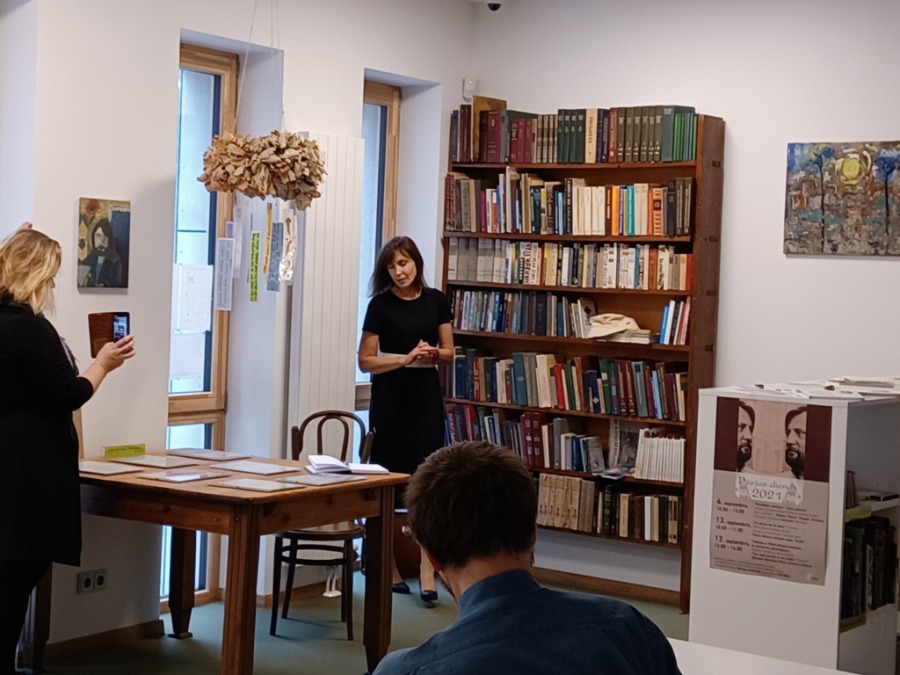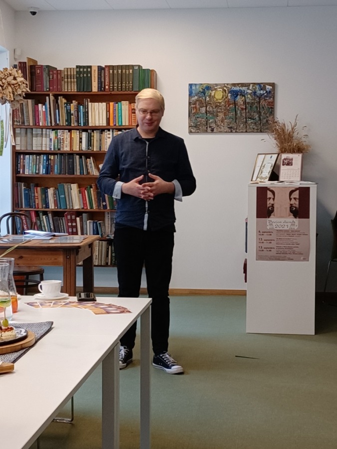 Septītās dzejas dienas. Pirmā tikšanās Pētera Brūvera vārdā nosauktās lasītavas telpās Ulbrokas bibliotēkā