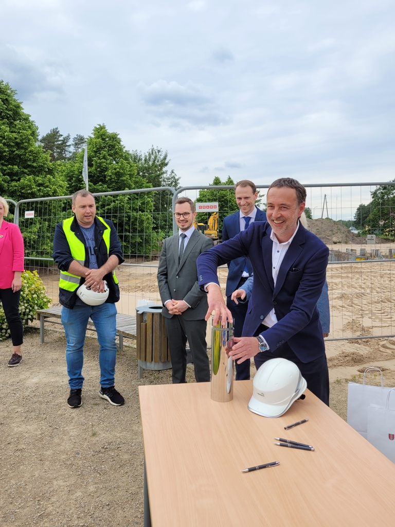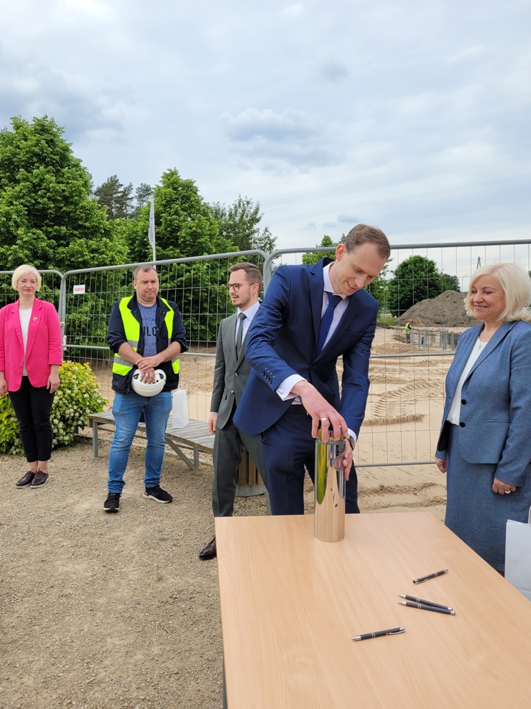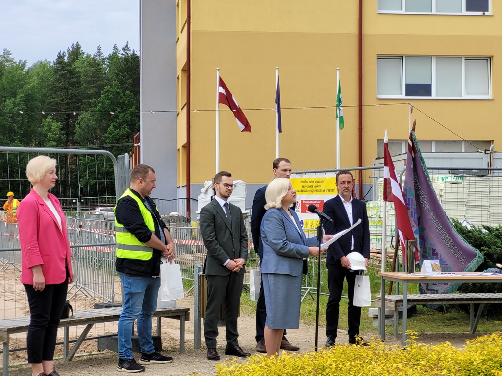 Svinīga laika kapsulas iemūrēšana Ulbrokas vidusskolas sākumskolas piebūves pamatos