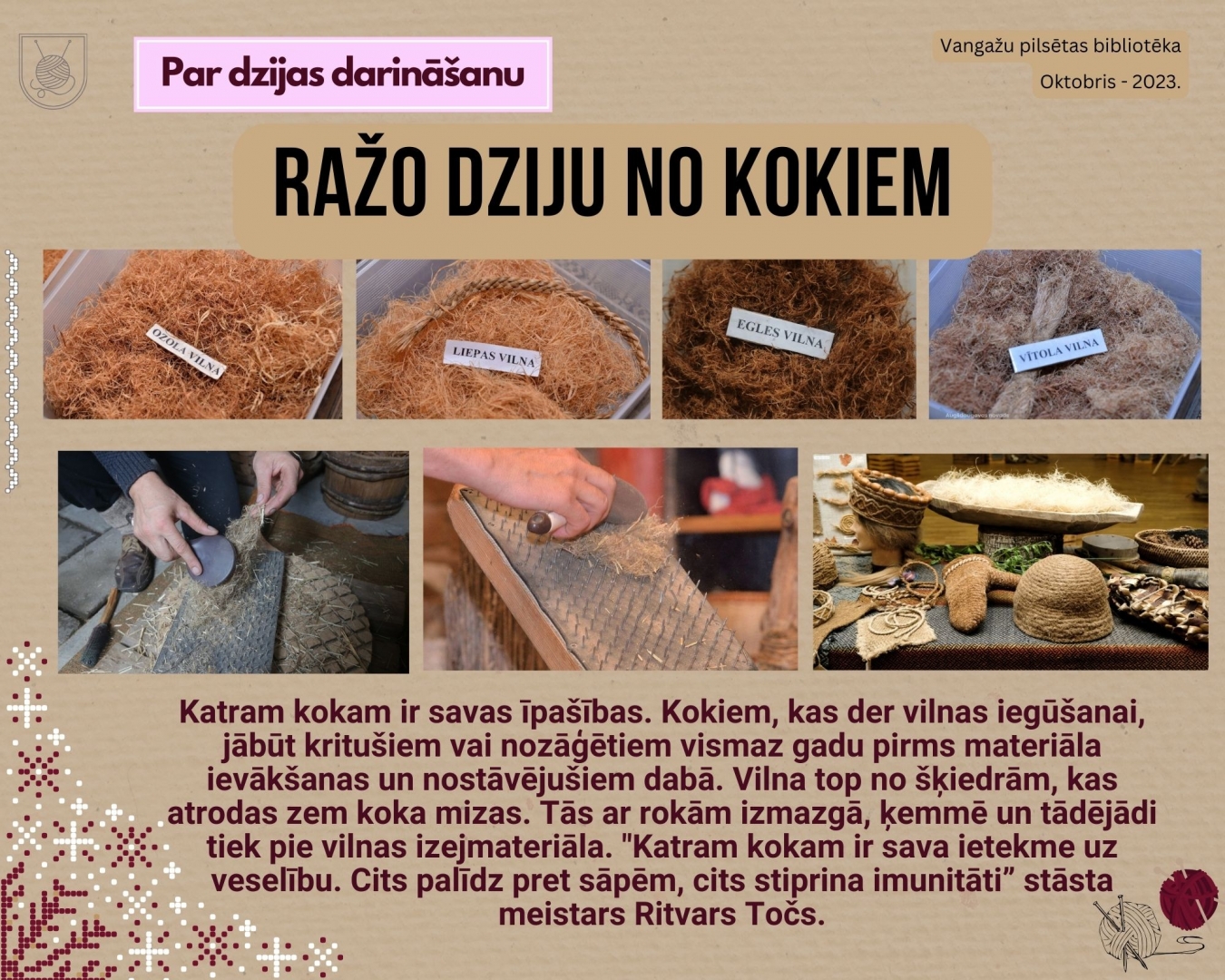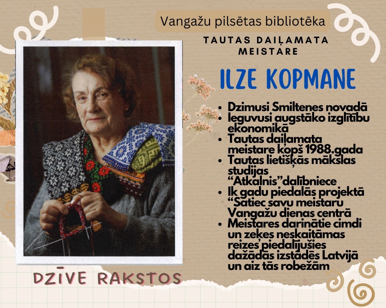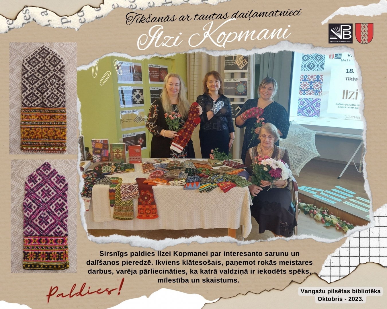 Tikšanās ar daiļamata meistari Ilzi Kopmani Vangažu bibliotēkā