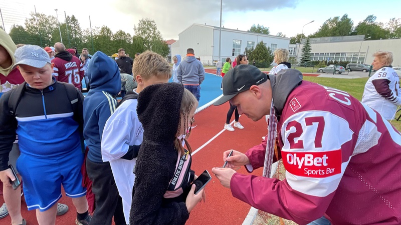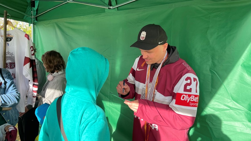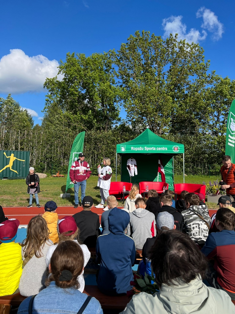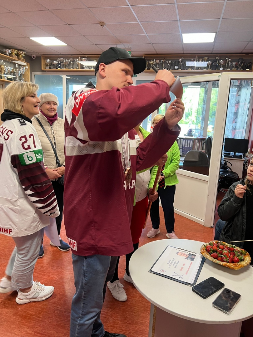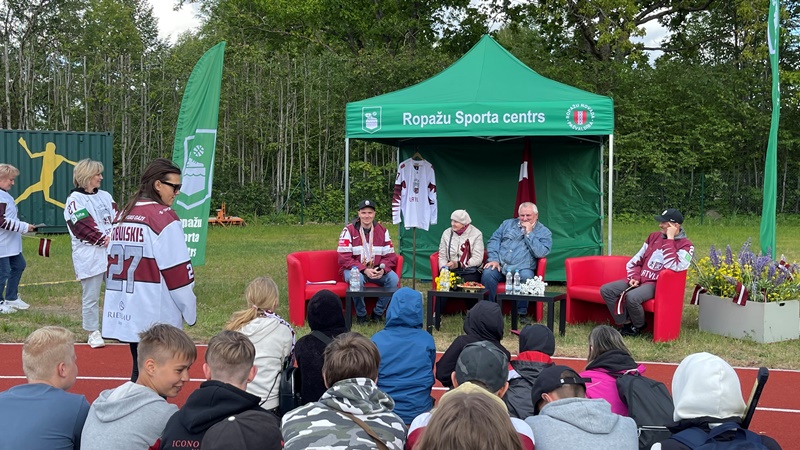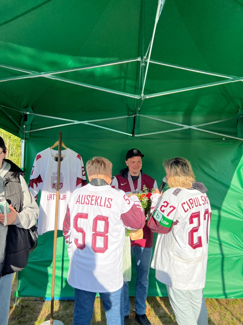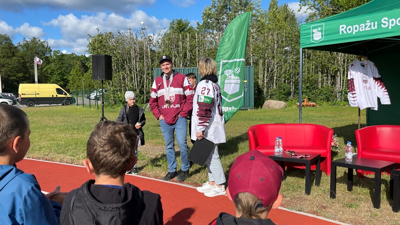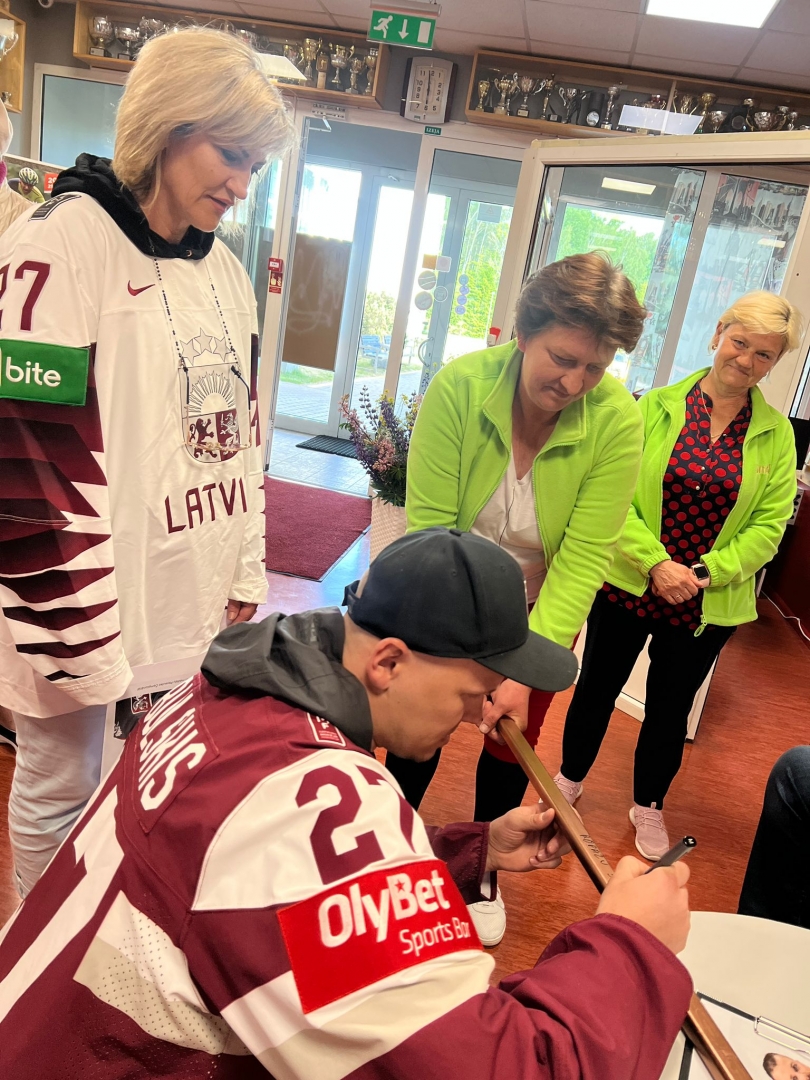 Tikšanās ar Latvijas izlases hokejistu Oskaru Cibuļski Ropažos