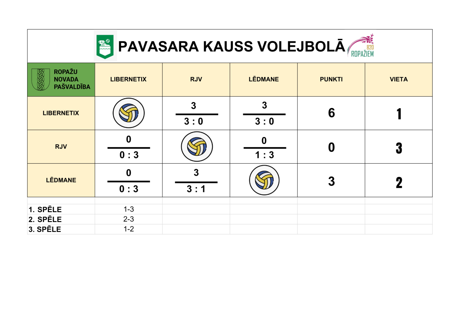 Ziemas noskaņās aizvadīts Ropažu pagasta "Pavasara Kauss" volejbolā vīriešiem